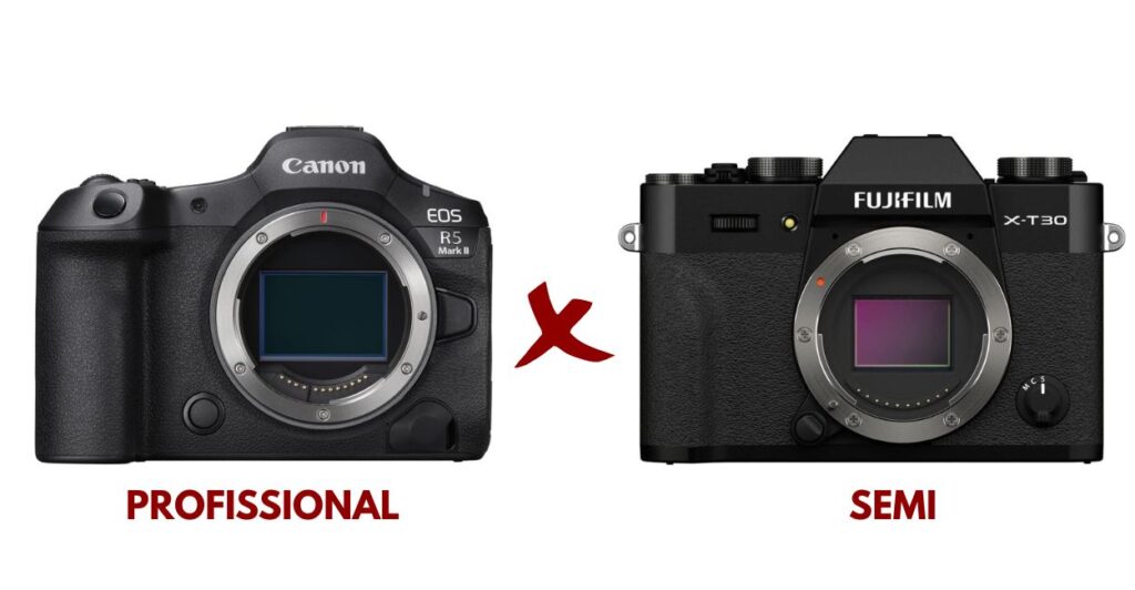 5. Qual a diferença entre uma câmera profissional e uma semiprofissional?